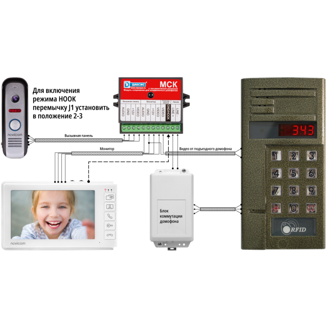 Даксис МСК – модуль сопряжения предназначен для подключения индивидуального видеодомофона к линии связи общеподъездного домофона с координатной системой адресации абонентов (Vizit, Cyfral, Eltis, Метаком), для приема вызовов от него и открывания подъездной двери с помощью стандартных функций видеодомофона.