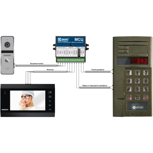 Даксис МСЦ – модуль сопряжения предназначен для подключения индивидуального видеодомофона к линии связи общеподъездного домофона с цифровой системой адресации абонентов (Даксис, Proel, Laskomex, Keyman-Polylock, Маршал-Raikmann, Метаком), для приема вызовов от него и открывания подъездной двери с помощью стандартных функций видеодомофона.