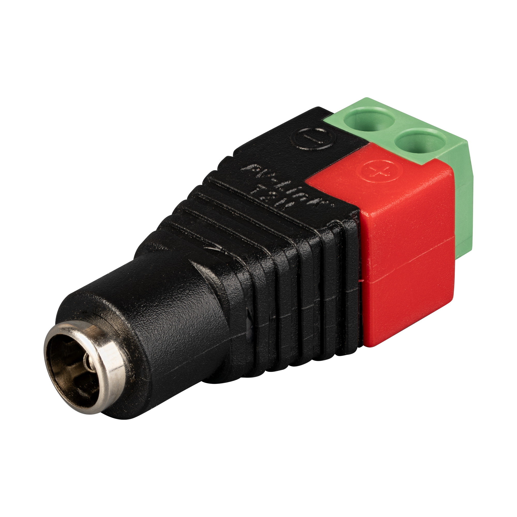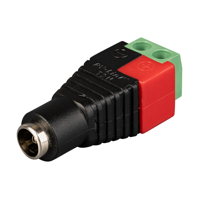 Со стороны кабеля разъем имеет винтовые контакты (закручиваются отверткой), а со стороны блока коннектор питания DC Male. PV-T2M рассчитан на напряжение до 24 В. Материалы разъема: пластик, нержавеющая сталь.